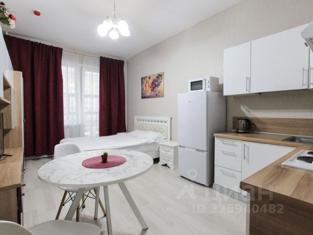 На кухне есть холодильник и микроволновая печь. В этом доме есть магазины Магнит, Пятерочка, Fix Price.