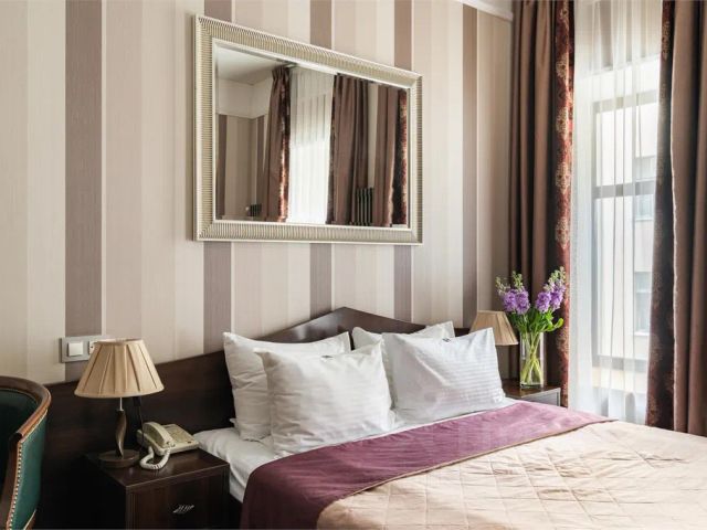 Бутик-отель DOM - это отличный выбор для тех, кто хочет насладиться красотой архитектуры и художественными сокровищами Санкт-Петербурга, вдали от массовых туристических маршрутов. Отель воплощает атмосферу стильного дома, сочетая предметы роскоши, оригинальные элементы дизайна и произведения искусства. Бывший доходный дом, построенный в 1876 году архитектором Августом Жоффрио, сейчас представлен Вашему вниманию в ультрасовременном виде. Уникальная атмосфера и история окрестностей органично сочетаются с современной дизайнерской концепцией бутик-отеля. Интерьеры создавались мастерами британского архитектурно-дизайнерского бюро Project Orange. Дизайн отеля объединил классический интерьер с современными архитектурными решениями. В отделке отеля использовались уникальные материалы. Пол в холле выполнен из натурального мрамора. Наборный паркет из редких пород деревьев в каждом номере не оставит равнодушными любителей натуральных материалов. Стены библиотеки,расположенной при входе в отель, холлов и номеров украшены работами выдающегося петербургского фотохудожника Александра Китаева. Из лобби гости попадают в ресторан-атриум с застекленной крышей. Номера воссоздают классическое пространство, украшенное коллекцией авторской мебели от дизайнеров Project Orange. В интерьере комнаты, намеренно эклектичном, гости чувствуют себя не как в гостиничном номере, а как в частном доме в окружении вещей, заботливо подобранных хозяином и отражающих палитру его индивидуальных предпочтений. Современный английский стиль отеля - это и стилизованный красный комод в каждом номере, и бархатистый текстиль высочайшего качества, и искусственно состаренные изысканные зеркала, и очаровательно строгий дизайн черных ванных комнат с позолоченной фурнитурой и по-французски пикантным окном на улицу. Дизайнеры Project Orange, создавшие не один интерьер бутик-отелей по всему миру, бережно сохранили историческое здание и привнесли современный английский колорит в самое сердце Петербурга. Теперь все гости отеля могут ощутить комфорт, достойный ценителей приватных дизайнерских отелей. Бывший многоквартирный дом находится в музейном квартале города. Главный вход отеля расположен напротив историко-архитектурного ансамбля Соляного городка. Большинство номеров выходят окнами на Летний сад, воспетый великим русским поэтом Александром Пушкиным. Нестандартные для простого путешественника достопримечательности окружают отель. В пешей доступности находятся шедевры Русского музея - Мраморный дворец и Инженерный замок, окруженный со всех сторон водами Фонтанки и впадающей в неё реки Мойки. В нашем маленьком доме вы ощутите большое умиротворение и отдохнете от суеты современного мира. Семейный люкс с видом на улицу Просторный и элегантный номер люкс подходит для комфортного размещения компании до четырех гостей. Средняя площадь номера 55 кв.м. Номер имеет балкон и окна с видом на историческую улицу Оружейника Федорова и боковой вид на Летний сад. Во всех номерах паркетный пол из редких пород деревь Комната посуточно на улице Гангутская в Санкт-Петербурге.