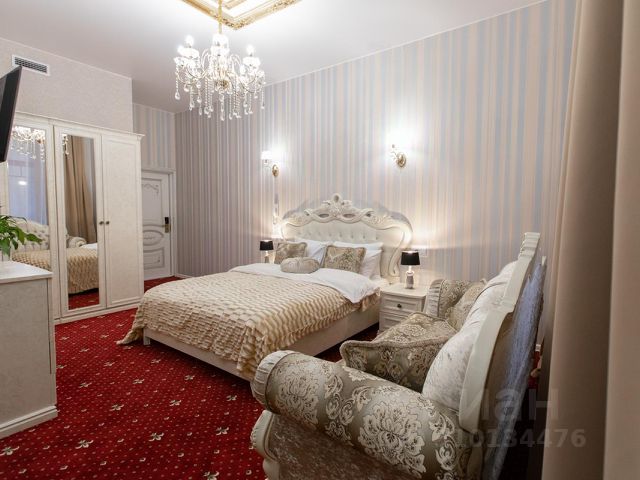 Роскошные хрустальные люстры украшают номер и ванные комнаты.