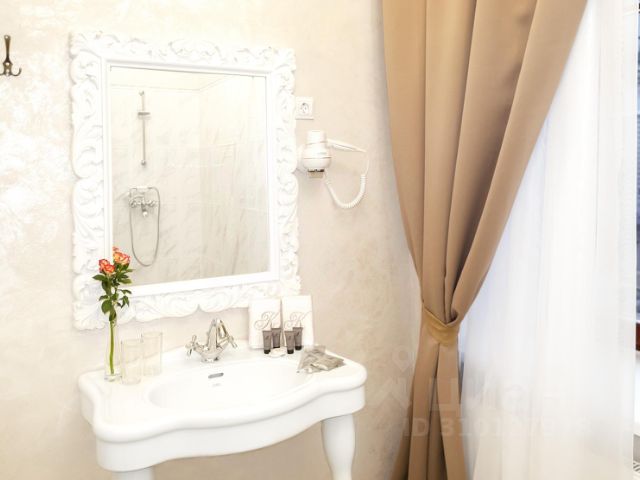 В ванных комнатах: душевая комната с душем увеличенного размера для двоих человек, оснащённая качественной сантехникой, раковина, зеркало в багетной раме, фен, весы, халаты, тапочки. Обе Ванные комнаты укомплектованы всеми необходимыми туалетно-косметическими принадлежностями.