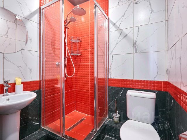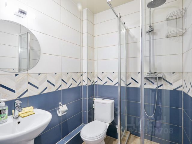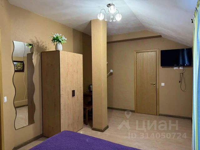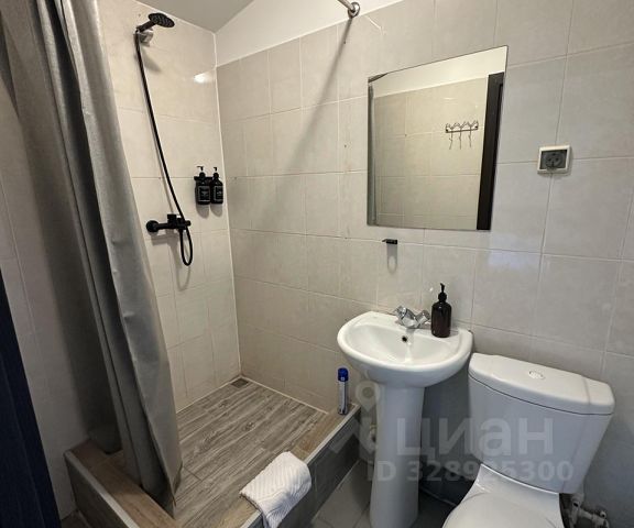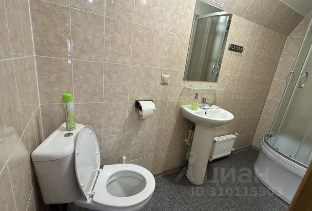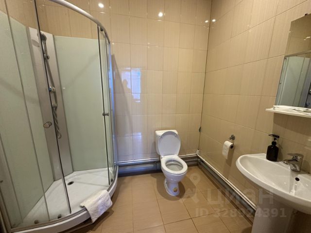 В ванной комнате: душевая кабина, туалет, зеркало, фен, гигиенические принадлежности (мыло, шампунь, гель д/душа, шапочка д/душа, ватные палочки и диски, набор с зубной щеткой и пастой), тапочки и комплект из трех махровых полотенец на каждого гостя.