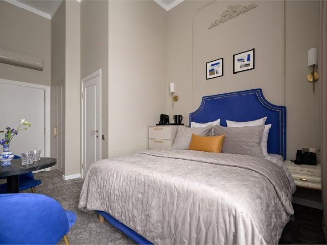 Дизайнерский отель Жорж был открыт в конце 2020 года и удобно расположился в самом центре Санкт-Петербурга, рядом с Литейным проспектом и в 10 минутах ходьбы от главной магистрали города Невского проспекта. Ближайшая станция метро Чернышевская находится в 5 минутах ходьбы. В пешей доступности от отеля расположены такие известные достопримечательности, как Сад Дружбы, именуемый в народе Китайским сквером, идеально для посещения весной, Русский музей (1.6 км), Летний сад (1 км), Михайловский театр (1.7 км), Марсово поле (1.1 км), Эрмитаж и Зимний дворец (2.5 км). Уютные, индивидуально оформленные номера на 1-м и 2-м этажах отеля, в которых курение запрещено, оснащены удобными кроватями с ортопедическими матрасами, телевизорами с плоским экраном, собственной ванной комнатой с душевой кабиной и бесплатными банными и туалетно-косметическими принадлежностями, бесплатным доступом к Wi-Fi. Вид из окон открывается во внутренний, благоустроенный и тихий дворик. В течение дня можно взбодриться ароматным кофе или отдохнуть после продолжительной прогулки за чашечкой чая, а также в гостиной зоне возможно воспользоваться чайником, холодильником, микроволновой печью, и в распоряжении гостей в любое время гладильная доска и утюг. Ежедневно для все желающих гостей сервируется вкусный завтрак "континентальный". Сотрудники отеля Жорж всегда рады помочь организовать для гостей трансфер, экскурсии по городу, заказать билеты в театр, музей и другие проходящие рядом интересные и популярные мероприятия. Гости, путешествующие на машине смогут воспользоваться бесплатной парковкой во внутреннем дворе, заранее места отель не бронирует. Современный номер оформлен в классическом стиле и оснащен всем необходимым для комфортного проживания. Вид из окон открывается во внутренний тихий дворик. В номере двуспальная кровать и кресло раскладное, которое может использоваться в качестве дополнительного спального места, телевизор с плоским экраном, кресло, кабельное телевидение, Wi-Fi, центральное отопление, собственная ванная комната с душевой кабиной, феном, банными и косметическими принадлежностями, тапочками. Комната посуточно на улице Моховая в Санкт-Петербурге.