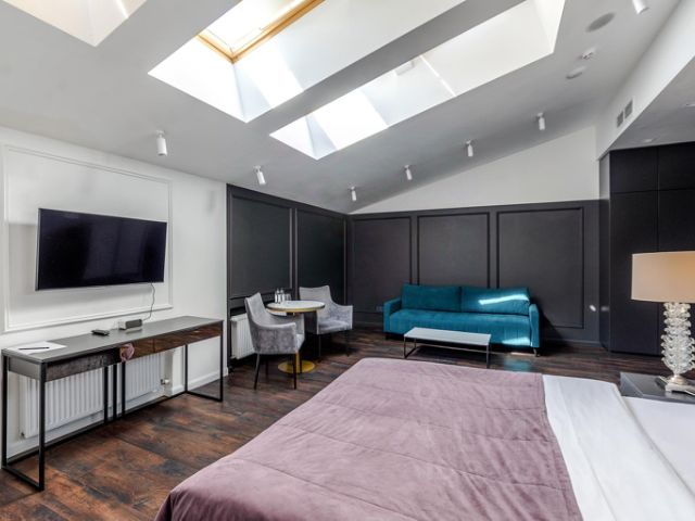 "ACQUALINA" - дизайнерский отель в самом центре Санкт-Петербурга в 5 минутах пешком от ст. м Пушкинская, на пересечении ул. Марата и Подъездного переулка. До метро Пушкинская 5 минут пешком. До Московского вокзала 15 минут на транспорте. В аэропорт Пулково путь составит 18 км. Отель включает в себя номера площадью от 21 до 56 кв. метров с различными вариантами планировочных решений: от мансардных номеров "Стандарт" до просторных двухкомнатных номеров "Люкс" с кухонной зоной. Просторные дизайнерские номера оснащены всем необходимым для комфортного проживания гостей: широкие кровати, телевизоры с интерактивным гостиничным управлением, кухонная зона для приготовления пищи, кондиционированные номеров и повышенная шумоизоляция. Дизайн каждого номера оформлен в стиле ар-деко от легендарной студии Studia 54. В окружении есть все необходимое для комфортной жизни и отдыха: лучшие рестораны и магазины города, театры, музеи, концертные залы, деловые центры, торговые комплексы и многое другое. В пешей доступности — центральные набережные, несколько станций метро, десятки бутиков, ресторанов, бизнес-центров и супермаркетов. Район отличается превосходной транспортной доступностью — рядом расположены основные магистрали, по которым можно быстро и удобно добраться в любую точку города. На территории отеля располагается идеальное место для проведения деловых завтраков и ланчей - ресторан и бар THE LARK, где гости могут насладиться сытным завтраком и широким выбором блюд в формате шведский стол. Изысканная и теплая гостеприимная атмосфера бара привлекает сюда не только постояльцев отеля, но и гостей города. В отеле предусмотрен эксклюзивный номер премиальной категории "Мансардный Люкс", расположенный на 5 этаже отеля. Просторный дизайнерский номер имеет две комнаты: спальню с двуспальной широкой кроватью и гостиную зону с обеденным столом, мягкой мебелью и комодом. Вы сможете приготовить бодрящий ароматный кофе в любое время (капсульная кофемашина находится в номере). Спальные места оборудованы ортопедическими матрасами и постельным бельем премиум-класса. В каждом номере имеется чайная станция, док-станция, тапочки и халаты. Просторная ванная комната оборудована вместительной душевой кабиной, сдвоенной раковиной для умывания и туалетом, феном. Дополнительной комплектацией номера является зубной, бритвенный и косметический наборы, халат и тапочки, маска для сна, щетка для одежды и расческа. Светлые номера с мансардным остеклением не имеют затемненных штор, но под запрос персонал предоставит для Вас маску для сна. Комната посуточно в переулке Подъездной в Санкт-Петербурге.