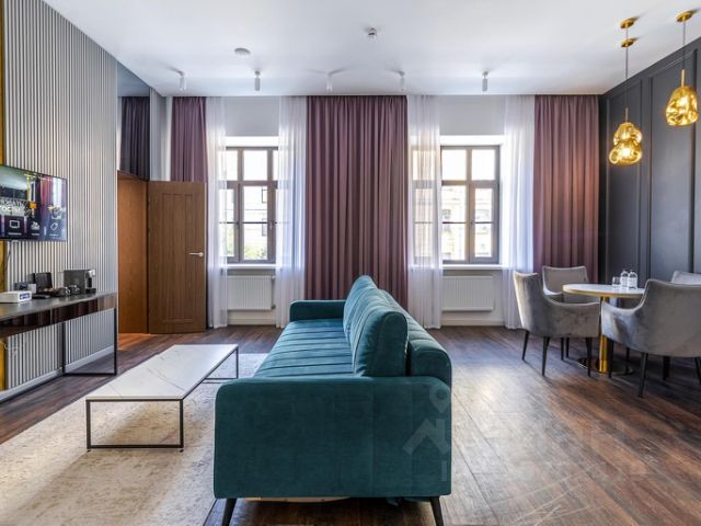 Апартаменты "Автор" в центре Санкт-Петербурга, расположенный на живописной набережной реки Фонтанки, предлагает своим гостям удобное размещение рядом с основными достопримечательностями. В непосредственной близости от отеля находятся исторические и культурные памятники города. Через дорогу расположен цирк Чинизелли и Конюшни Михайловского замка, а всего в 400 метрах — сам Михайловский замок, одно из красивейших зданий Петербурга. Для тех, кто любит архитектуру и искусство, в 5 минутах ходьбы на другой стороне реки находится Шереметевский дворец, известный своими коллекциями искусства и старинных интерьеров. До ближайшей станции метро "Гостиный двор" можно дойти всего за 10 минут, что делает отель удобным для перемещений по городу. К услугам гостей представлены несколько категорий апартаментов, среди которых Стандарт, Стандарт семейный и Люкс. Каждая комната продумана до мелочей, чтобы обеспечить гостям комфортное и приятное пребывание. Есть всё необходимое: телевизор, холодильник, кондиционер, сейф для хранения ценных вещей, а также бесплатный Wi-Fi для удобного доступа к интернету. В каждой комнате предусмотрена отдельная ванная комната с феном, свежими полотенцами и туалетно-косметическими принадлежностями, что добавляет уюта и удобства. На территории апартаментов гости могут воспользоваться бесплатным Wi-Fi. Люкс 2-х этажный с джакузи для некурящих, с сан. узлом, феном, халатами, бесплатными туалетными принадлежностями и Wi-Fi. Во всех комнатах есть телевизор, сейф, холодильник, кондиционер, мебельный гарнитур, а также письменный стол. На 1 - уровне расположена гостиная, 2 односпальных кровати, которые при необходимости сдвигаются и делается 1 большая кровать, туалет. На 2-м уровне расположена спальня с кроватью queen size (160*200) и ванная комната с джакузи. На 1 уровне возможно по предварительному запросу подготовить дополнительное спальное место - еврораскладушку. Максимальное размещение 5 взрослых и 1 ребёнок до 4-х лет без предоставления отдельного спального места.