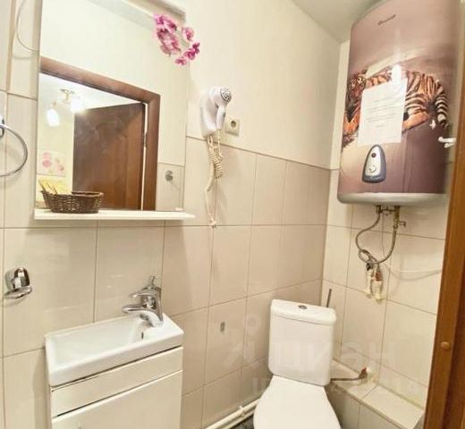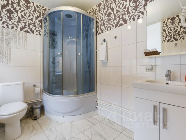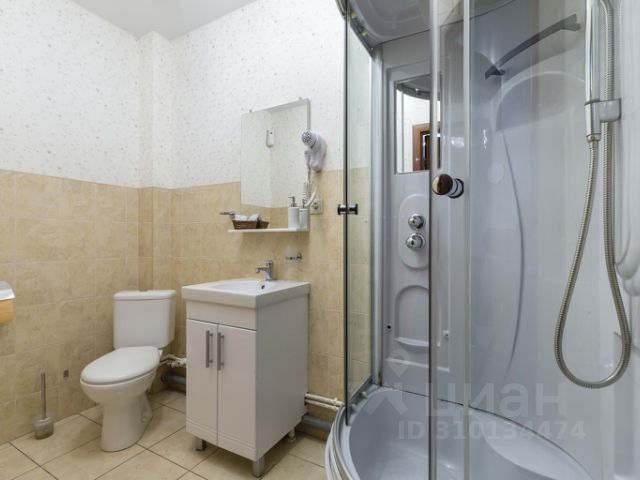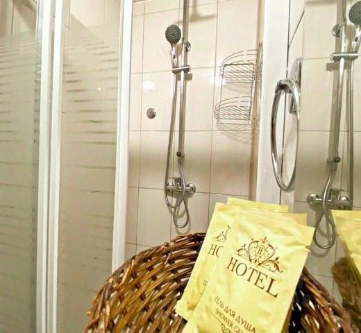 Ванная комната: зеркало с подсветкой, душ, туалет, раковина, фен. Бесплатные гигиенические принадлежности: шампунь, гель для душа, комплект полотенец.