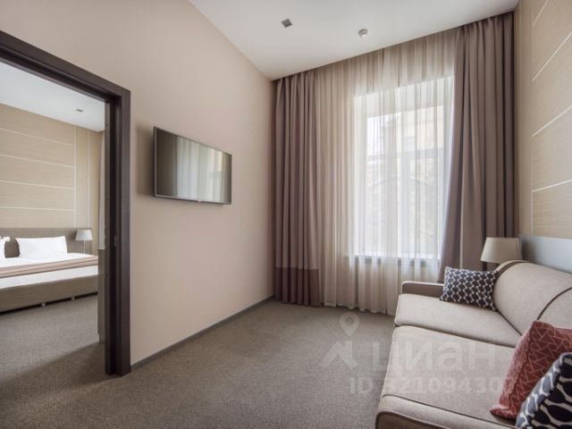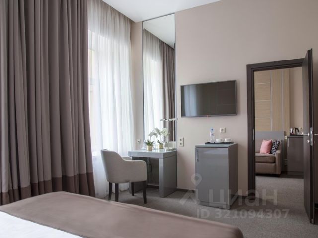 Площадь номера: 60м2 (2 комнаты). Номер состоит из двух просторных комнат - спальни и гостиной. Спальня оборудована большой комфортной кроватью (200х210 см). В гостиной имеется оборудованная рабочая зона. Для Вашего удобства в номере имеются: сейф, минибар, рабочее место, 2 санузла, чайный набор, телефон, косметический набор, халат, тапочки, фен, ЖК телевизор, кондиционер, бесплатный Wi-Fi. Возможно предоставление одного дополнительного спального места.