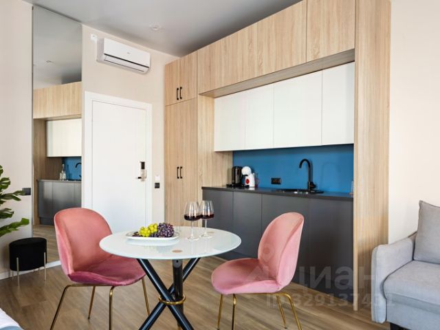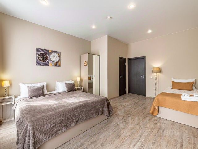 Удобства в номере: широкая двуспальная кровать, диван- кровать, собственная кухня в номере, чайник, микроволновка, набор посуды, мини- холодильник, столовые приборы, шкаф, рабочий стол, стул, телефон, зеркало в полный рост.
