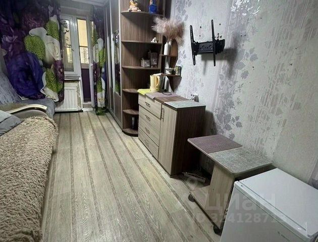 Уютная комната с лоджией (3 кв. м) в бывшем общежитии. Лоджия застеклена стеклопакетом. В комнате сделан хороший ремонт, поклеены новые обои, положен новый ламинат, потолок натяжной. Мебель в отличном состоянии, новый wi-fi роутер, после того как был сделан ремонт в комнате проживала только одна девушка, поэтому комната в отличном состоянии. В комнате нет телевизора, шкаф для одежды стоит в общем коридоре, в комнате для одежды есть стальная напольная вешалка длиной 1,2 метра. В квартире всего 6 комнат, на кухне есть своё место с стиральной машинкой, туалет с душевой кабиной на 3 комнаты.