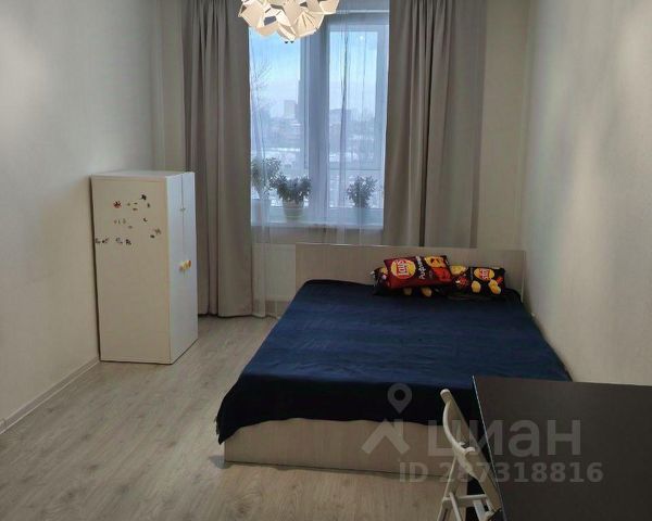 В комнате есть двуспальный каркас кровати с матрасом, шкаф-купе, рабочее место.