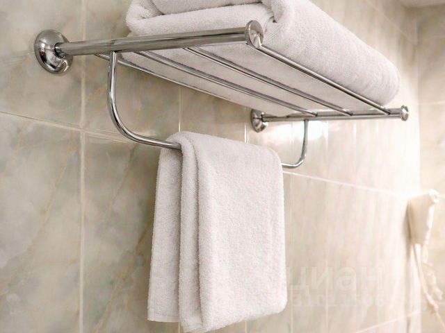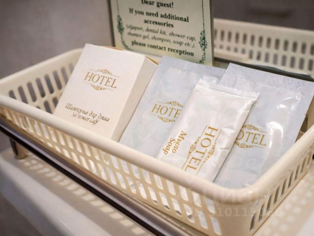 В ванной комнате: душевая кабина, туалет, зеркало, фен, гигиенические принадлежности (мыло, шампунь, гель д/душа, шапочка д/душа, ватные палочки и диски, набор с зубной щеткой и пастой), тапочки и комплект из трех махровых полотенец на каждого гостя.