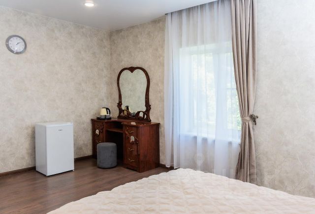 Новый мини-отель в Красном Селе, пригород Санкт-Петербурга. Рядом парк, 3 озера с пляжем, волейбольными площадками и детской площадкой, ж/д станция "Красное село" в 5 минутах. Находится недалеко от красивых достопримечательностей: в 18 км. от города Гатчина, в 20 км. от города Пушкин, в 25 км. от аэропорта Пулково, в 33 км. от города Петергоф. В наличии двухместные номера, с одной и двумя кроватями, с возможностью размещения на дополнительном месте, а также улучшенный двухместный номер с итальянской мебелью. В каждом номере собственный санузел с душевой кабиной, LCD телевизор с цифровым телевидением, электрический чайник и чашки, мини-холодильник, вентилятор или кондиционер. Есть общая кухня, где гости могут приготовить завтрак/обед/ужин, есть: чайник, кофемашина, питьевая вода. Бесплатная парковка для гостей отеля. Гостям предоставляются надежные и безопасные услуги трансфера. Возможна доставка вкусной и качественной еды в номер. Бесплатный WI-FI во всех номерах. Площадь: 33 кв. м Вместимость: до 3х гостей, доп место (раскладушка)-1000р/сутки Номер для некурящих, окна в номере открываются, есть москитная сетка Совместный сан узел душевая, туалет. Оснащение: две кровати 1,5 спальные (160*200), два кресла, ванная комната с душевой кабиной, LCD телевизор с цифровым телевидением, бесплатный Wi:Fi , электрический чайник и чашки, мини-холодильник, кондиционер, зеркало, шкаф для одежды, тапочки, фен, гладильная доска и утюг /по запросу/ , бутилированная вода. В отеле есть общая кухня , с кофемашиной, питьевой водой, микроволновой печью, электрическим чайником, холодильником и электрической плитой.