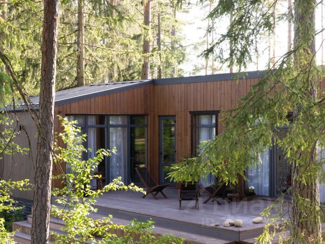 Натуральное дерево, камень, панорамные окна и просторная терраса создают невероятную уютную и светлую атмосферу, а уникальный сосновый лес вокруг органично сливает с природой.