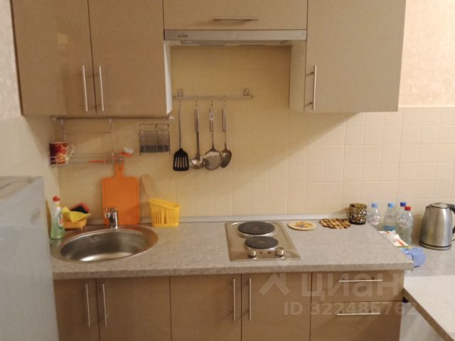 - Жилая площадь - 19 метров, с очень удобным зонированием благодаря практичной планировке. Даже если живёт пара, один может спокойно готовить, не мешая второму человеку работать, или отдыхать. На кухня вся необходимая техника: холодильник, микроволновая печь, духовой шкаф, варочная панель, вытяжка и электрический чайник, а также набор посуды (сковорода, кастрюля, тарелки, чашки и столовые приборы).