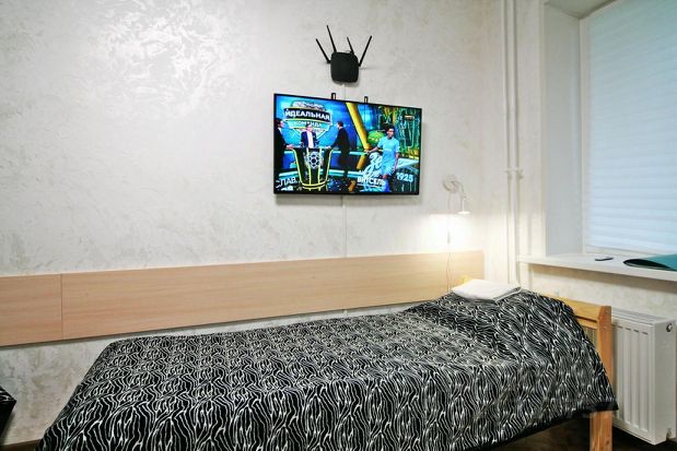 Просторная комната с телевизором, большим шкафом, раскладным диваном