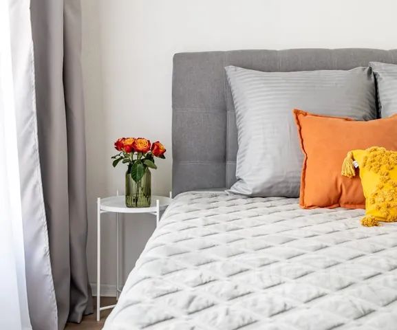 В нашей студии спальное место уютно отделено от кухни зонированием со шторами, а высокие потолки 3.5 метра добавляют больше воздуха и пространства. Для вашего комфортного сна мы выбрали очень приятное к телу постельное белье, ортопедические подушки и спальное место 140 см от аскона.