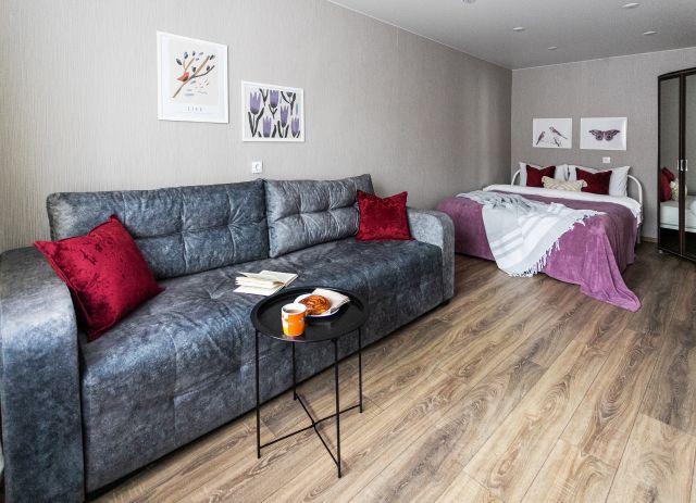 Квартира Ёжик,туман,мысли Функциональное зонированное пространство, классное спальное место, кухонная зона, напольное покрытие из натурального дерева сосна - радость для ваших босых ножек, обустроенная ванная комната. Студия создавалась для тех, кто знает что с семьей и друзьями хорошо в любую погоду, для тех кто видит красоту во всем. Снимая эту квартиру Вы не останетесь равнодушными, она подарит Вам тепло и хорошее настроение, а возможно захочется окунуться в историю мультфильма Ёжик в тумане".Предоплата при бронировании 2500т.р.
