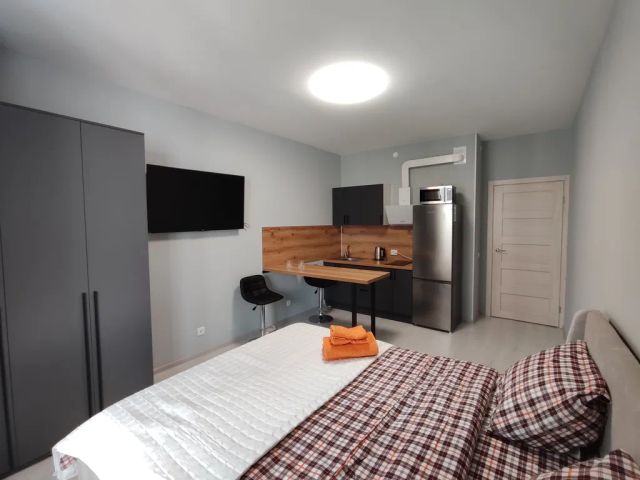 Мы постарались продумать каждую мелочь, чтобы обеспечить нашим гостям максимальный комфорт. В нашей квартире общей площадью 39 квадратных метров, расположенной на 13 этаже, вас ожидает уютная двуспальная кровать с ортопедическим матрасом (180х200 см, толщина матраса 31 см), постельное белье и полотенца.