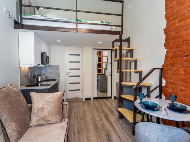 В кухне гостиной есть комфортный диван -кровать 155 см для дополнительного размещения.