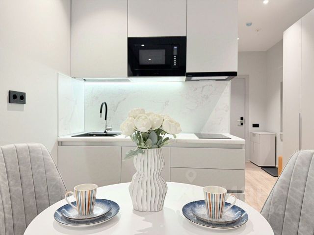 Сдается идеальная уютная студия в апарт-отеле от собственника, без комиссии, только на долгий срок! (В помощи посредников не нуждаемся) Отличная локация: 12 минут пешком до метро. 10 минут на машине до Невского пр. В соседнем доме фитнес, Перекресток, Хлебник, ПВЗ, Uppetit. В красивом лобби апарт-отеля можно работать. В квартире есть все: стиральная машина, полноценный встроенный холодильник, духовой шкаф, микроволновка, ТВ Xiaomi 55 дюймов, утюг и гладильная доска, новая посуда, одеяло-подушки, постельное белье, полотенца, сушилка для белья. Качественная новая мебель: стол и тумба из массива, два стула, мини-диван, тумба под ТВ. Есть большой шкаф для одежды, много мест для хранения на кухне, мягкая кровать с подъемным механизмом и ортопедическим матрасом. Вид из окна не на дорогу, а вдаль - много неба. Ищем бережных арендаторов на долгий срок. Условия: Договор аренды 11 месяцев (депозит возвращается при условии, если съезжаете не раньше, чем через 6 месяцев) Депозит-залог 40,000 руб. К/у оплачиваются отдельно (тк это апарт отель, к/у летом около 6500-7000р, зимой около 8500-9000р с учетом счетчиков). Интернет 650₽ в месяц.