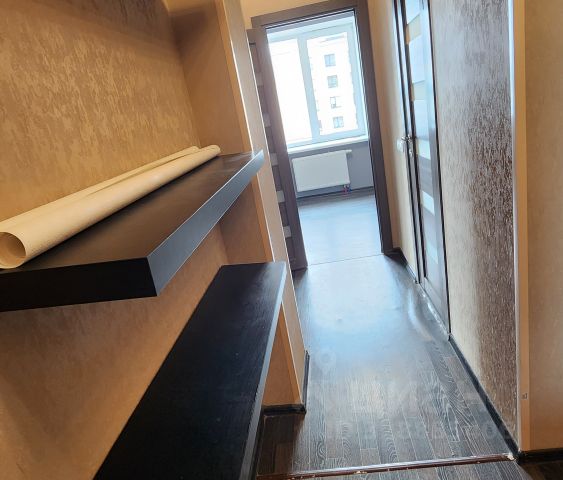 В холле огромный шкаф до потолка который вмещает весьма внушительный гардероб. Также обувница с ящиком для средств для обуви, перчаток и тп; удобная вешалка, яркое освещение и зеркала в полный рост.