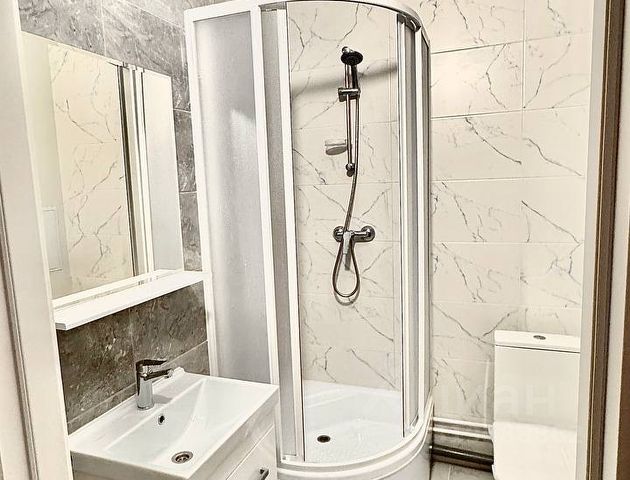 В комнате большая двуспальная кровать, раскладной диван, столики. Достаточно места для хранения всех нужных вещей, есть обувница, два шкафа и стеллаж. Так же что-то можно хранить на балконе. Санузел раздельный, установлена душевая кабина.