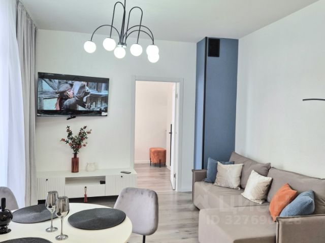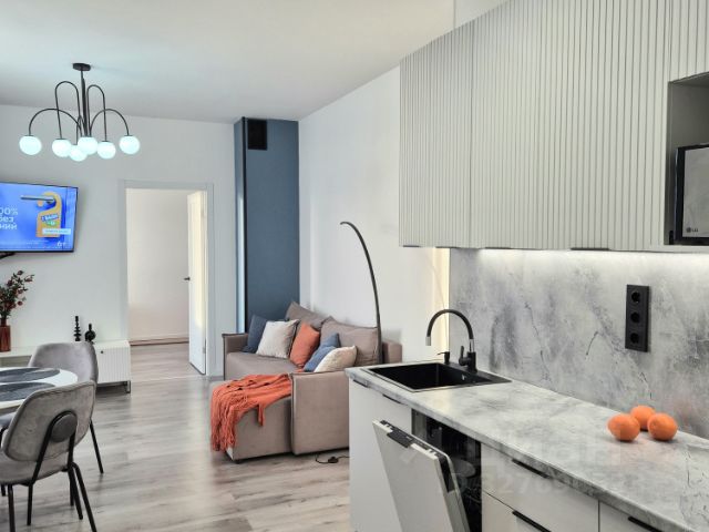 Улучшенная студия: кухня отделена дверью, фактически небольшая однушка. Сделан качественный ремонт. Высокий этаж: красивый вид, тихо, чисто. Диван-двуспальная кровать (+ ортопедический матрас), стол, шкаф, пенал, стенка. Дополнительное освещение. Комфортабельная душевая в кафеле (не кабинка!). Всё чистое, свежее, продезинфицированное. Квартира ухоженная, регулярно обслуживается. Кафель во всех влажных зонах. Система "Умный дом" для Вашей безопасности. Всё уже продумано и готово, заезжай и живи прямо сегодня!