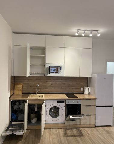 — посудомоечная машина, кофеварка, чайник, вытяжка, варочная панель, большой двухкамерный холодильник, СВЧ-печь, 4 комплекта посуды