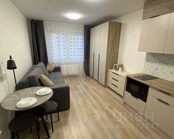 Впервые сдается уютная студия в новом доме комфорт-класса ЖК Ручьи. Сдается на длительный срок. В квартире всё готово для проживания. Вся техника новая: стиральная машина, смарт ТВ, холодильник, варочная панель, вытяжка, микроволновая печь, утюг, чайник. Подключен интернет. Вся мебель новая: прихожая, диван в разложенном виде со спальным местом 150см*190см, кухонный гарнитур, стол, 2 стула, шкаф для одежды, комод, напольная сушилка для белья, в ванной шкафчик с зеркалом. На кухне есть необходимая посуда: 2 кастрюли, сковорода, тарелки, столовые приборы, тоже всё новое. До ближайшей остановки общественного транспорта 18 минут пешком. До выезда на кад - 5 минут на машине. Ближайшая станция метро Академическая - 15 минут на машине. Оплата 25 000₽/мес + КУ (примерно 3000₽). Залог 25 000₽. Сдается 1 или 2 арендаторам, без вредных привычек, животных и детей. ----- Примечание: у собственника могут быть дополнительные пожелания к жильцам - обсудите их в чате или по телефону