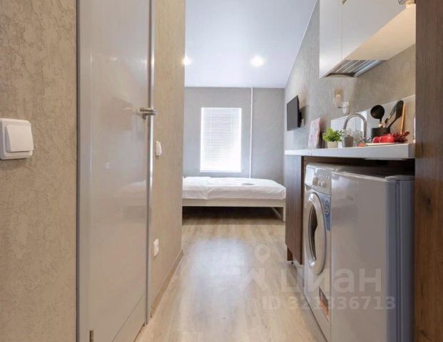 Сдаётся на длительный срок очень уютная теплая большая студия. Сделан хороший ремонт вся мебель и техника новая. Вся необходимая техника для комфортного проживания присутствует плюс кофемашина Имеется собственная отделённая от общего коридора прихожая с мебелью очень удобно. Домофон + дверь с замком на этаж. Квартира ранее НЕ СДАВАЛАСЬ. Очень удобное расположение. Метро Елизаровская 7 мин пешком. Центр города 10 минут на метро. Много зелени рядом. Окна на тихий зелёный двор. Озон,Вайлдберриз 20 метров Магнит 100 метров Тихий спокойный зелёный район. Сдает собственник без комиссии для 1 или 2 порядочных, аккуратных жильцов без животных. Просьба риэлторов не звонить. Квартира (с фото) от собственника на улице Ткачей в Санкт-Петербурге на длительный срок.