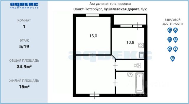 От года, 33 000 ₽ + 4 500 ₽ комм. платежи (без счётчиков), без комиссии, залог 45 000 ₽