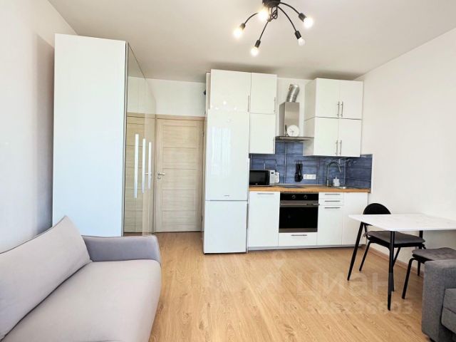 Сдаётся светлая квартира-студия с евроремонтом и совмещённым санузлом в ЖК Кудровский парк. Без депозита! Её можно посмотреть когда Вам удобно: бронируете время, забираете ключи и спокойно осматриваете. Если всё понравится, договор подпишем онлайн и будем поддерживать Вас на всех этапах аренды. Квартира оборудована кухонным гарнитуром, мебелью и бытовой техникой. Есть: - Варочная панель; - Духовой шкаф; - Холодильник; - Телевизор; - Стиральная машина; - Чайник. Дополнительную мебель/технику можно приобрести в счёт арендной платы. Полы - плитка и ламинат. Окна выходят на улицу. До м. Улица Дыбенко - 20 минут пешком. Собственник готов заселить не более 2 взрослых жильцов с детьми. С домашним питомцем нельзя. Во дворе есть бесплатная парковка, детская и спортивная площадки. Дом находится в районе с развитой инфраструктурой: в пешей доступности школы и детские сады, продуктовые магазины, кафе, медицинские центры, аптеки, салоны красоты, гипермаркет Лента и ТРЦ Мега. Недалеко находится парк Косая Гора, Лесопарк Оккервиль и Парк Есенина.