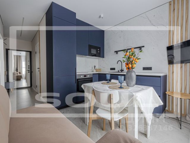 Просторная и светлая однокомнатная квартира с высокими потолками 3м общей площадью 70м2 с комнатой неправильной формы с французским балконом, большой кухней площадью 15м2, отдельной ванной комнатой и просторным холлом.