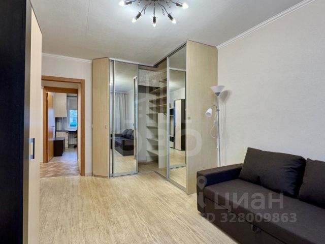 Окна во двор на детский садик. Парковка общественная во дворе, если не слишком поздно приезжать - то место найти можно. Остановка общественного транспорта в 2х минутах ходьбы. До новой ст.метро "Юго-Западная" - 20 минут на общественном транспорте, до ст.м. "Ленинский проспект" - 30 минут. Продуктовый магазин - в 1 минуте ходьбы, полпути до остановки общественного транспорта. Большая комната (20,3 м2) зонирована подиумом и представляет из себя спальню и гардеробную, маленькая комната (10,89 м2) объединена с кухней (7,92 м2) и представляет из себя зону проведения досуга и встречи гостей.