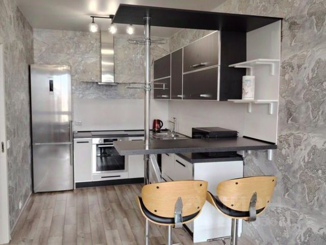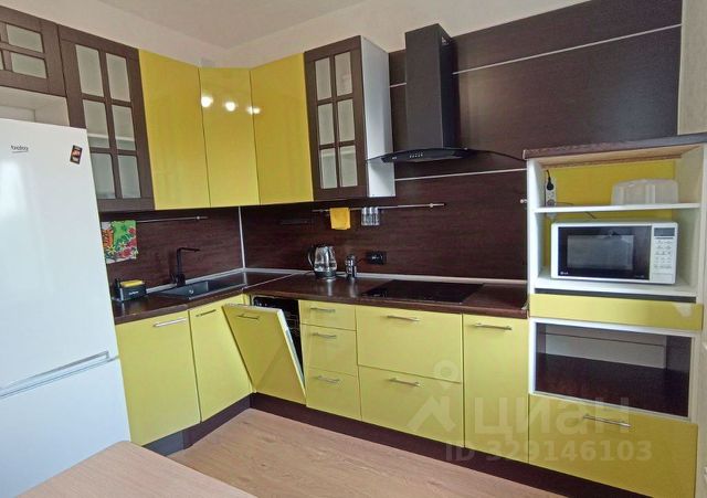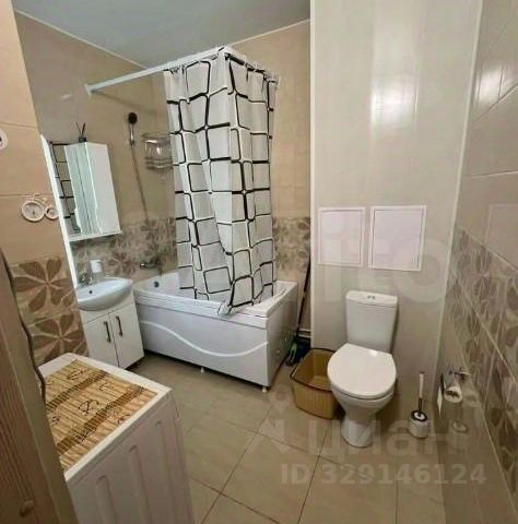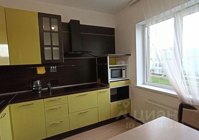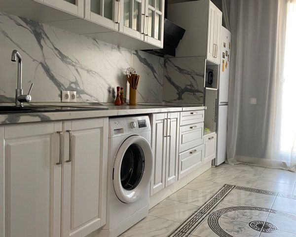 Оснащение квартиры: кухонная мебель, диван, обеденный стол, стулья, холодильник, варочная поверхность, вытяжка. В комнате кровать с ортопедическим матрасом, шкаф. Санузел совмещенный, есть стиральная машина, пылесос.