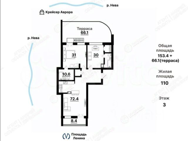 • ✅ Объект наибольшей площади: 153,4 м²