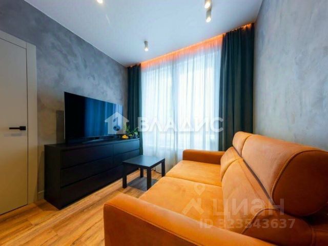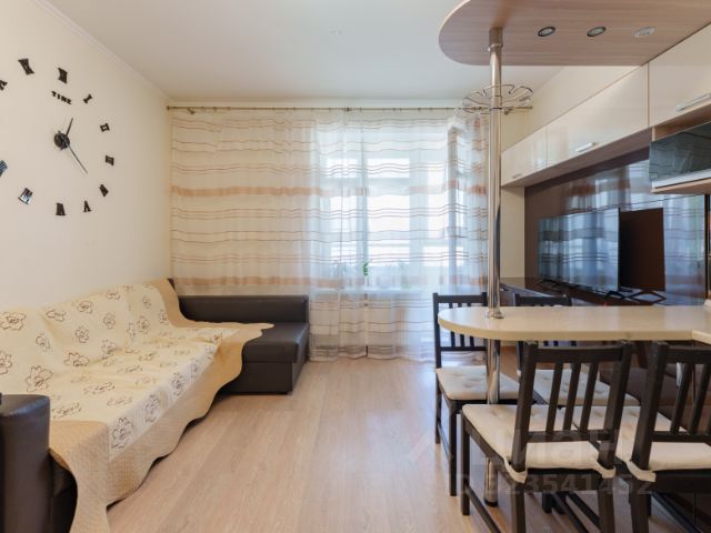 В зале: новый раскладывающийся диван, матрас для сна высотой 17 см, вместительный платяной шкаф, новый ковер, рабочее место (стол, компьютерное кресло, настольная лампа), телевизор Philips диагональ 48, подвесные тумбы, туалетный столик с подсветкой, гладильная доска с утюгом и сушилка для вещей.
