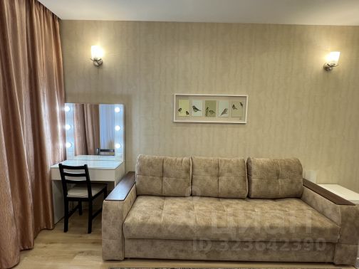 В зале: новый раскладывающийся диван, матрас для сна высотой 17 см, вместительный платяной шкаф, новый ковер, рабочее место (стол, компьютерное кресло, настольная лампа), телевизор Philips диагональ 48, подвесные тумбы, туалетный столик с подсветкой, гладильная доска с утюгом и сушилка для вещей.