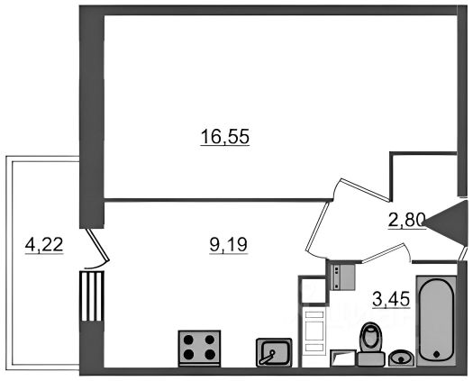 От года, 53 100 ₽ + 6 500 ₽ комм. платежи (счётчики включены), комиссия 50%, без залога