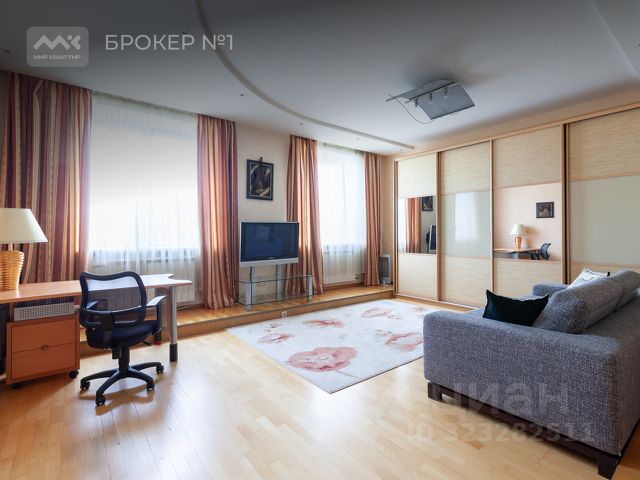 Гостиная (21,1): Диван (раздвижной), кресло, большой платяной шкаф, шкаф для книг, стенка для гостиной, телевизор и ТВ приставка.