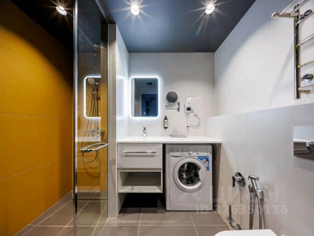 Комнату-трансформер вы можете настроить под себя — кровать убирается в стену, стол складывается, стулья штабелируются. Современным дизайн-решениям сопутствуют технически отработанные инженерные — регулируемые тёплые полы, настраиваемое освещение, душевая со встроенным трапом и инсталляция Tece, ручной душ на 3 режима Villeroy&Boch, встроенная в нише кухня с холодильником с морозильной камерой и микроволновая печь Gorenje с функцией гриль и различными режимами, индукционная варочная панель.