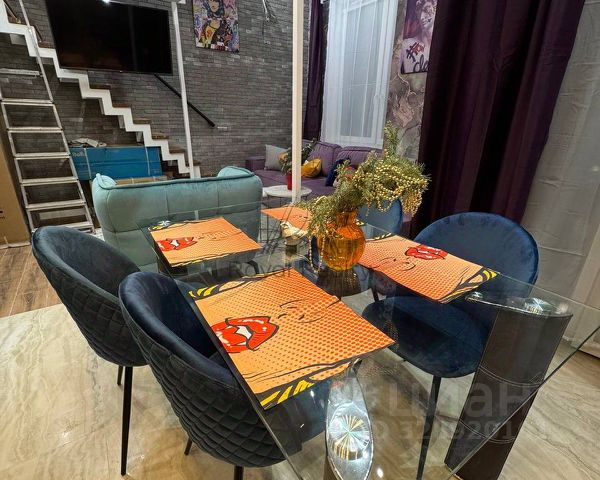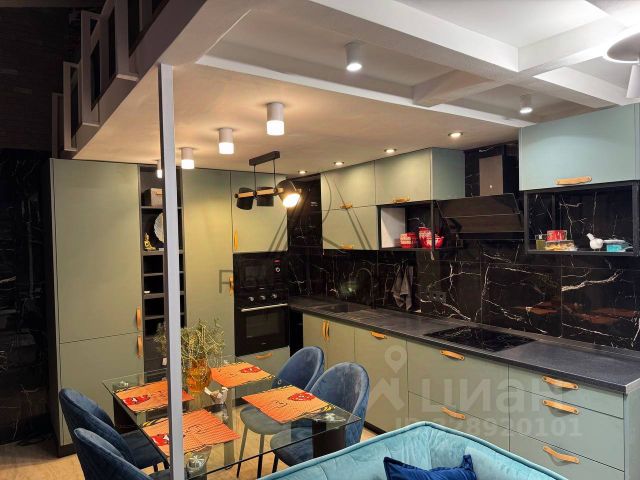 Кухня площадью оборудована современной техникой: встроенная плита, духовой шкаф, микроволновая печь, посудомоечная машина и холодильник, винный шкаф. В гостиной стильное оформление с яркими акцентами, большой диван и обеденный стол создают уютное пространство для отдыха.