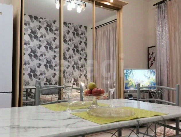 Квартира продумана до мелочей: функциональная кухня-гостиная и изолированная спальня, которую можно полностью закрыть стильной раздвижной перегородкой. Пространство выглядит свежо и современно, в отделке использованы светлые оттенки, создающие ощущение воздуха и уюта. Во всей квартире, включая санузел, установлены тёплые полы — тёплый дом ощущается уже с первых шагов. Предусмотрено множество систем хранения: обширные гардеробные шкафы и удобные ниши позволяют легко поддерживать порядок.