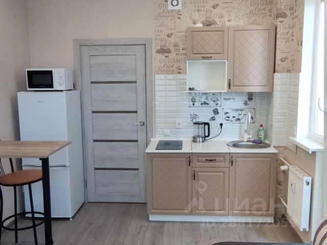 Квартира-студия в ЖК "Краски лета". В квартире есть вся необходимая мебель, кухня со встроенной стиральной машиной, варочной поверхностью, вытяжкой. Еврософа-книжка, шкаф-купе, прихожая, стол, 2 стула. Санузел в кафеле, с ванной 170 см. Застекленный балкон 4 м.кв. Окна во двор,на школу.
