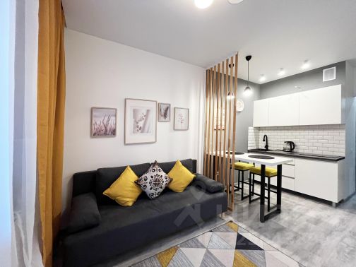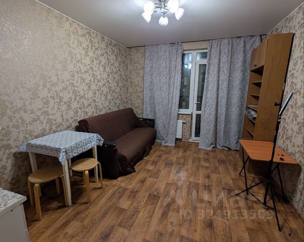 В долгосрочную аренду предлагается уютная студия. Комната 18 м2, квартира оборудована всем необходимым, кухонный уголок с плитой и холодильником, кухонный стол и стулья, стиральная машина в ванной, 2х спальный раскладной диван, шкаф, компьютерный стол. имеется необходимая посуда, в прихожей вешалка и стеллаж. Просторная лоджия. во дворе подземный паркинг, детские площадки, до метро 20 мин пешком. ----- Примечание: у собственника могут быть дополнительные пожелания к жильцам - обсудите их в чате или по телефону