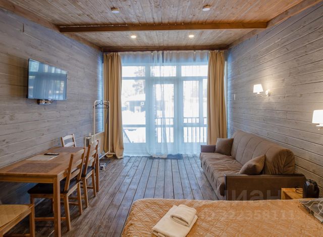 Апартаменты для двоих с одной большой двуспальной кроватью. В номере есть все необходимое для комфортного отдыха на несколько дней вблизи г.к. Игора и автодрома "Игора-Драйв". Оборудованная кухня, тв, обеденный столик для двоих, рейлинг для одежды, небольшие прикроватные тумбочки, комод для вещей и санузел с душевой кабиной.