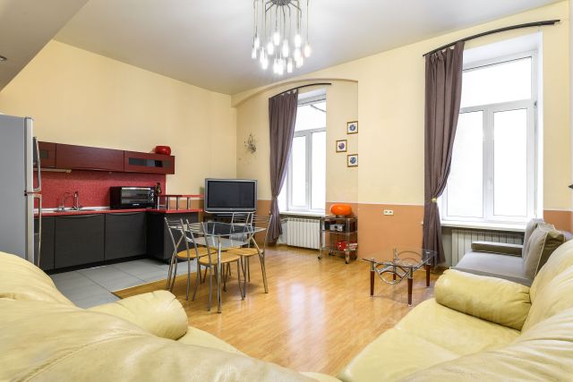 Аренда двухуровневой квартиры в СПб. Красивая квартира расположена в историческом центре города Санкт-Петербург, в знаменитом доме М. К. Кальмейер - 1873 года постройки. В 5 минутах пешком от Исаакиевского собора, и 7 мин пешком до Эрмитажа. На Большой Морской дом 34.