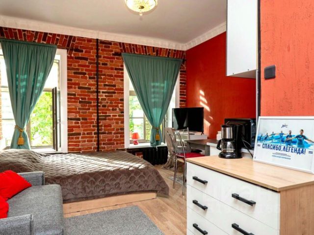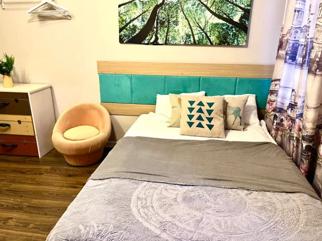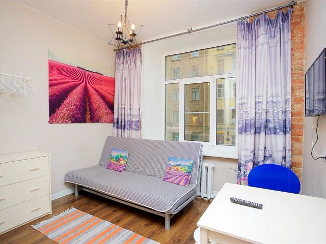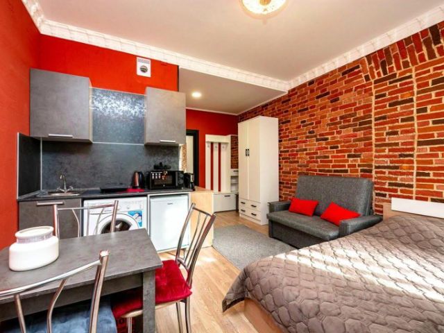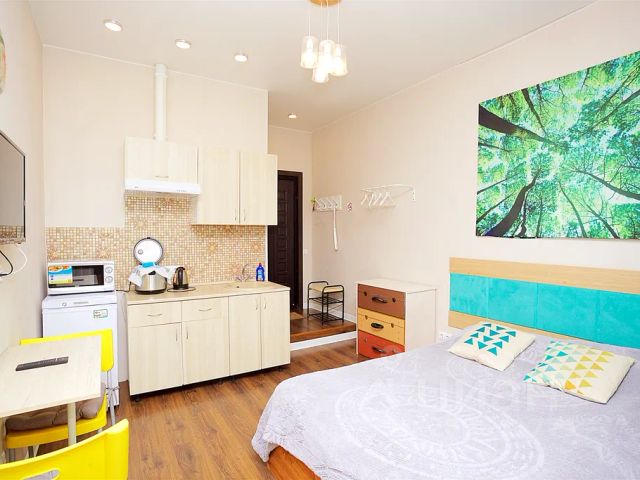 Одна из центральных и оживленных улиц города. Студии только что отремонтированы с участием дизайнера, обставлена и снабжены всем необходимым. Старинный дом 1906 года постройки. Характерная для того периода времени архитектура с большими окнами, высокими потолками и просторными парадными. Окна выходят на улицу. Мебель простая и удобная, зонирование помещения тщательно продумано. В квартире всегда проводится качественная генеральная уборка после каждого гостя, постояльцев ждет стерильно чистое пространство.
