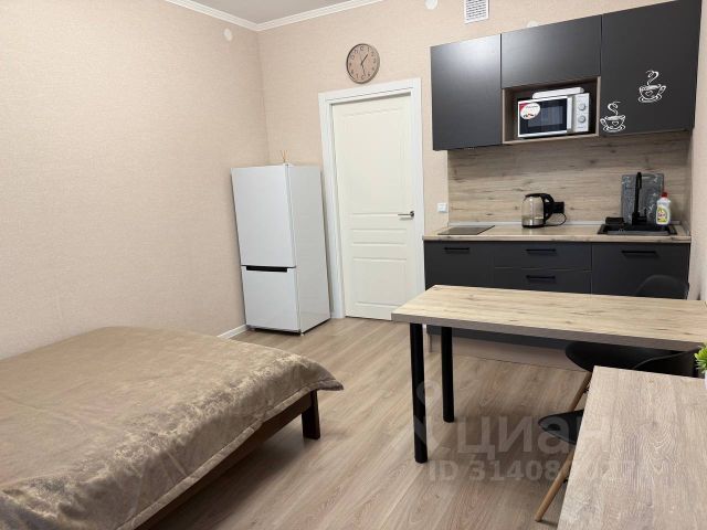 - Гостиная с мини-кухней (телевизор, мебель, холодильник, варочная панель, мойка, посуда, посудомоечная машина, чайник, капсульная кофемашина, СВЧ-печь);