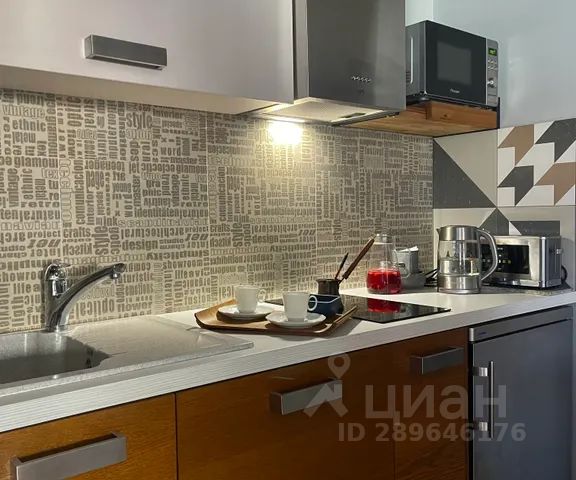 Оборудованная всем необходимым кухня: холодильник, посудомоечная машина, духовой шкаф, газовая варочная панель, вытяжка, чайник, микроволновая печь. Посуда для приготовления (кастрюля, сковородка, разделочные доски, тарелки, бокалы, ложки, вилки, ножи и другие необходимые мелочи.