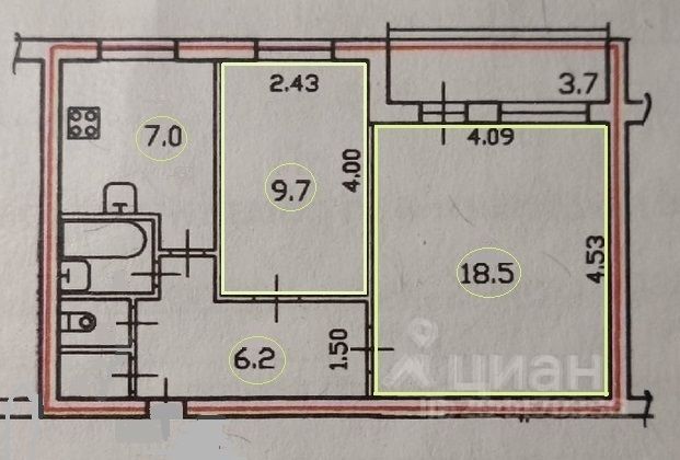Проторая двухкомнатная квартира с изолированными комнатами и просторний кухней и  балконом . Дом 2007 года .